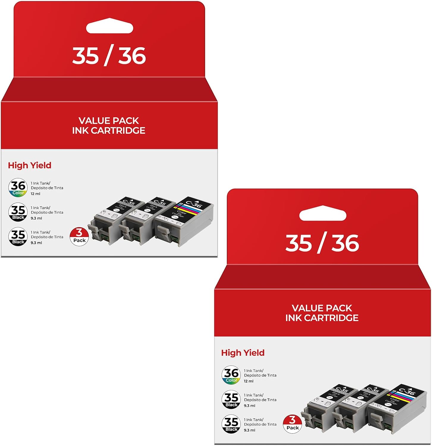 • Package Content: PGI-35 CLI-36 ink cartridges compatible for Canon 35 36 ink cartridges, includes 4 Pack Black PGI-35, 2 Pack Color CLI-36 ink cartridges