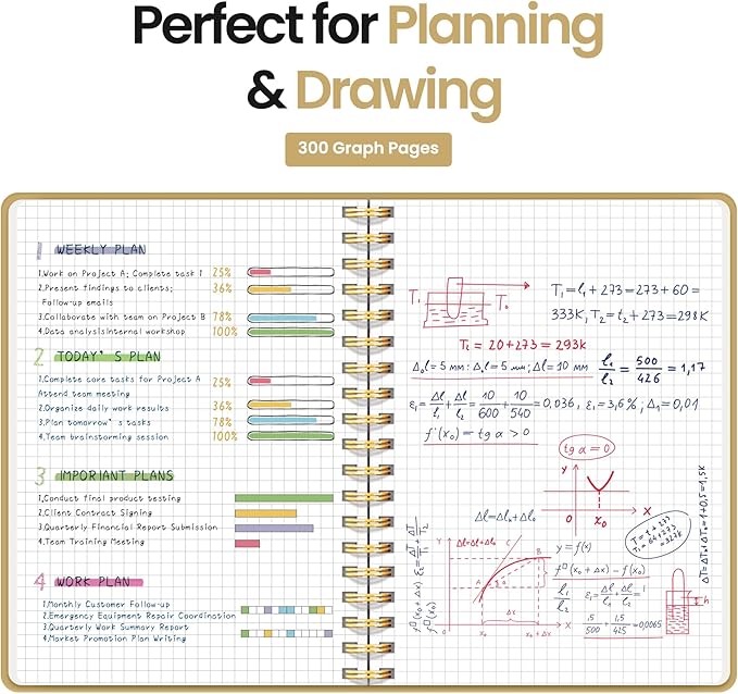 • 300 Pages Graph Journal: Our Graph Spiral Journal Notebook offers ample space for organized note-taking and quick referencing. An interior pocket keeps loose papers and extras in place, while the elastic band closure keeps your notebook neatly shut when not in use.