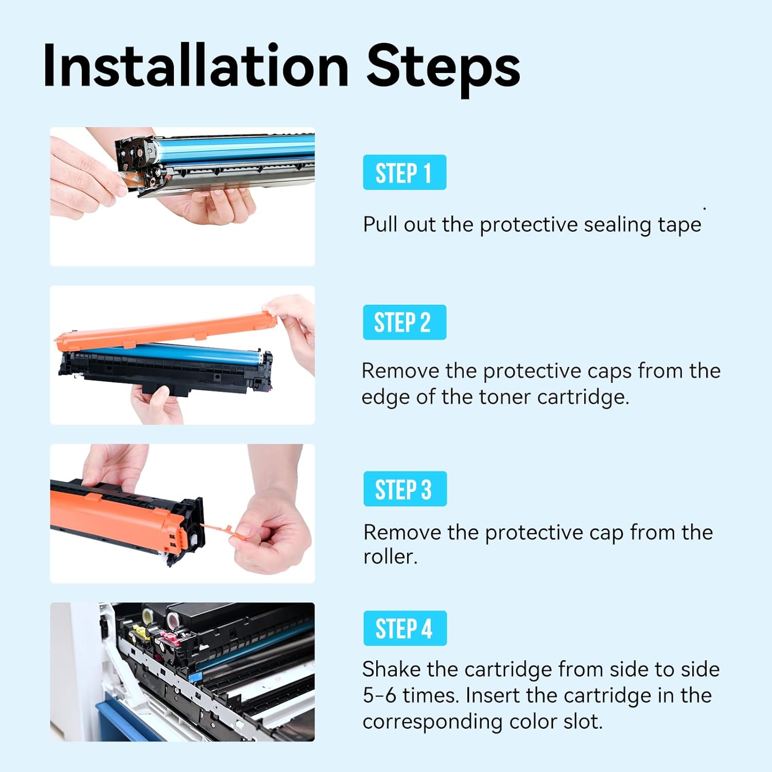 • 【Package Contains】: Replacement for HP 210A Toner Cartridges 4 Pack ( 1 x 210A Black toner cartridge-W2100A, 1 x 210A Cyan toner cartridge-W2101A, 1 x 210A Magenta toner cartridge-W2103A, 1 x 210A Yellow toner cartridge-W2102A)