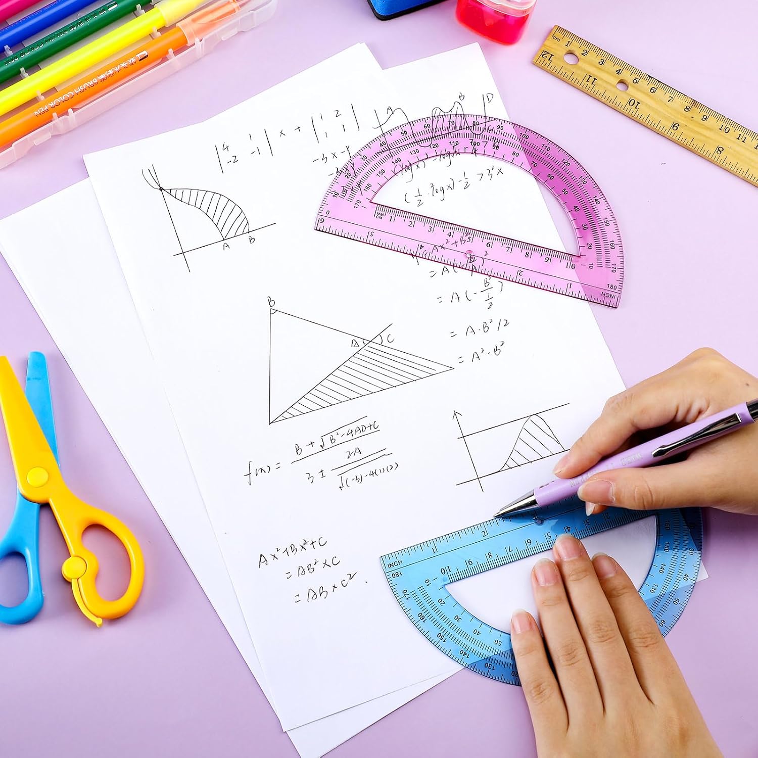 • Compact and Portable: with a 4-inch size, these protractors are conveniently compact, making them easy to store in pencil cases, desks, or backpacks, ensuring they are always on hand when needed