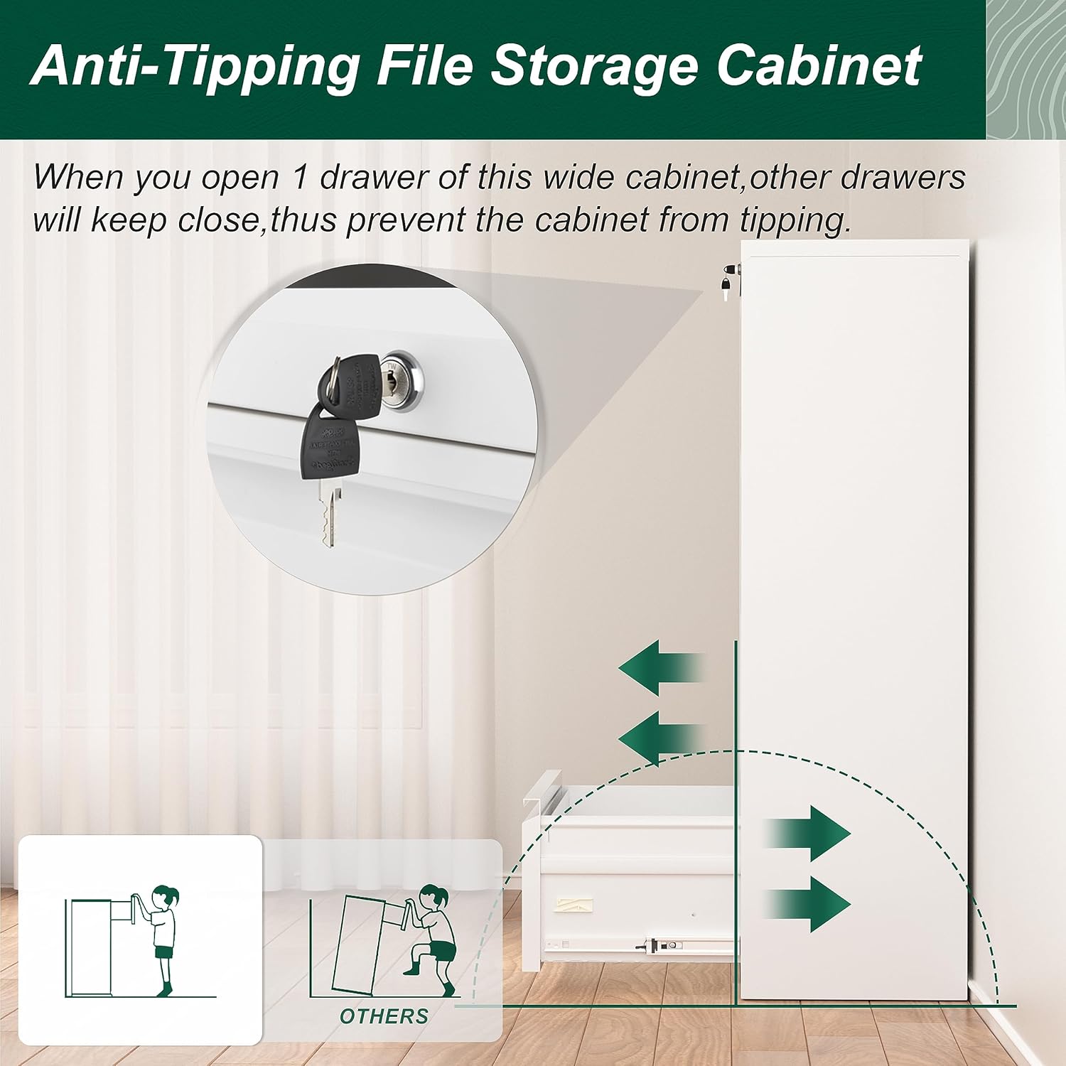 • ✔Lockable Lateral File Cabinet -- Our locking lateral filing cabinet with lock keys and features a interlock system that secures all drawers at once and keeps your important documents safe and secure while you are away from your workspace. With all drawers interlocking mechanism design, it will prevent tipping.
