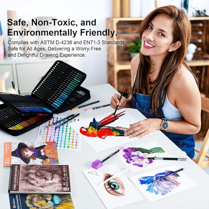 • 【Eco-Friendly & Non-Toxic Materials】: Made from sustainably sourced wood and acid-free, non-toxic materials that meet ASTM D-4236 certification. Safe for children and adults, ensuring a clean, healthy, and worry-free drawing experience.