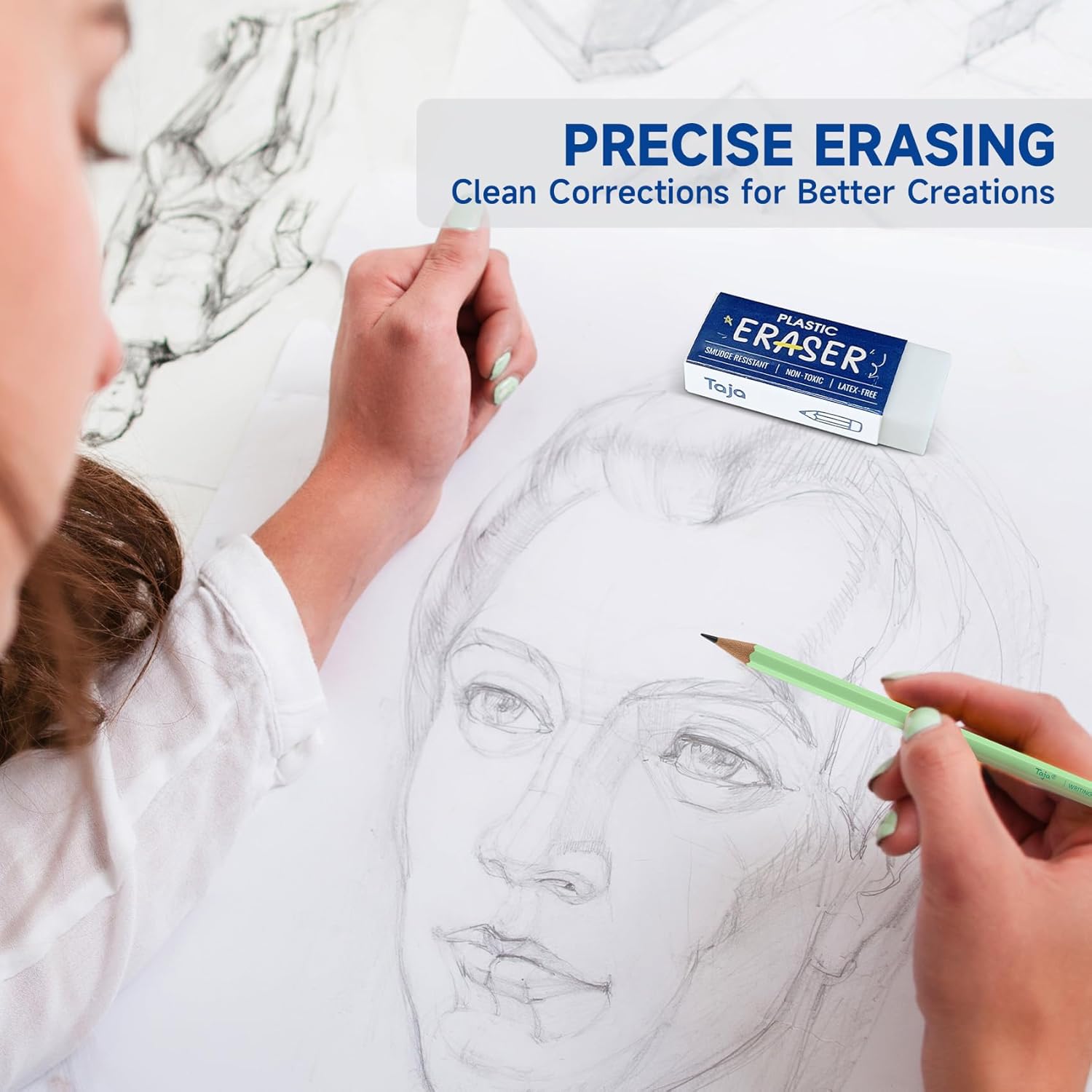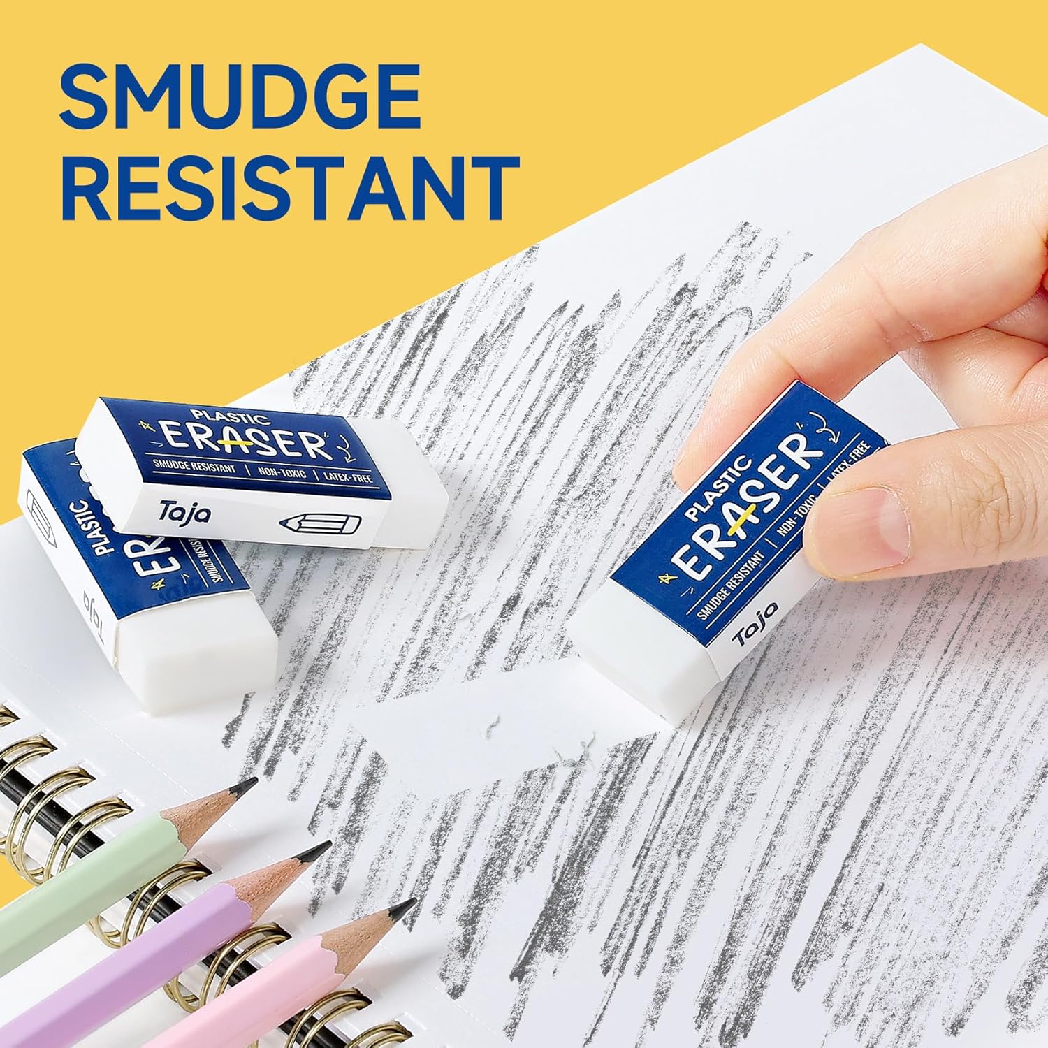• Clean & Smudge-Free Erasing: Made from soft, latex-free, non-abrasive materials that erase smoothly without tearing or scratching paper. Taja erasers remove pencil marks cleanly and efficiently without leaving smudges or residue. Perfect for tests, sketches, notes, or designs, delivering precise, mess-free corrections every time.