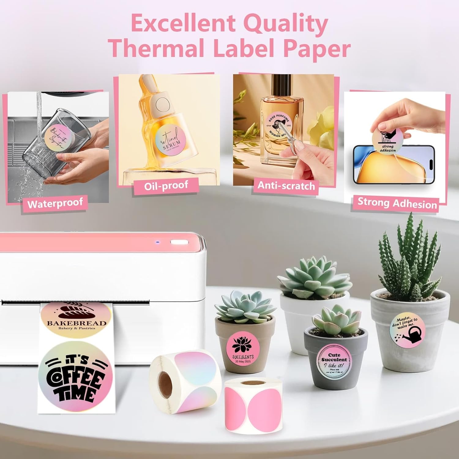 • Fit for Phomemo/MUNBYN Label Printer: 1 all pink & 1 color gradient label paper is suitable for Phomemo 241BT,for MUNBYN 130B /RW402B,for Omezizy D450BT,POLONO,JADENS,IDRPT.Simple installation, just put the paper roll into the printer in the right direction, then adjust the slot according to the label size to fix the label paper,turn on the printer will automatically correct the position of the label, and then connect with APP to print.