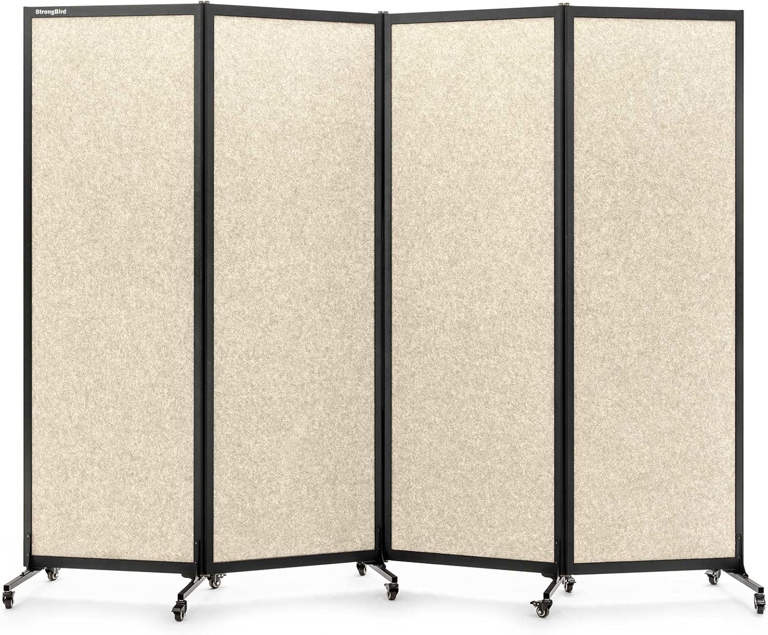 Upgrade Version Room Partition and Divider, Freestanding Rolling Dividers with Wheels,Office Privacy Screen Divider Wall,Classroom Felt Dividers,8'2"L* 6'7"H,4 Panel,Beige