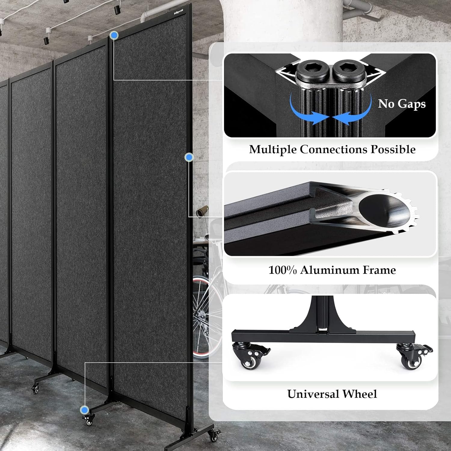 Upgrade Version Room Partition and Divider, Freestanding Rolling Dividers with Wheels,Office Privacy Screen Divider Wall,Classroom Felt Dividers,8'2"L* 6'7"H,4 Panel,Dark Grey