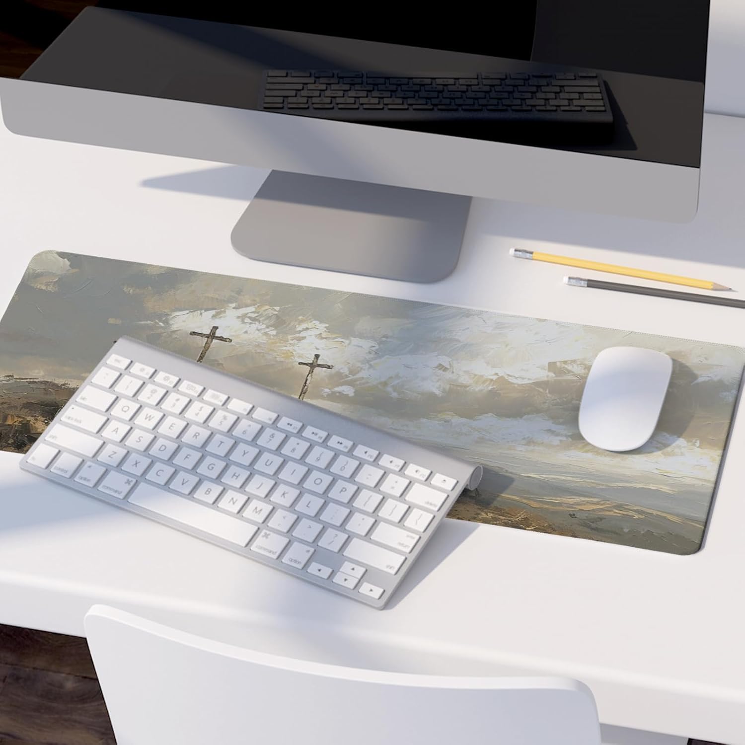 Christian Cross Easter Mouse Pad, Religious Themed Mouse Pad,He is Risen Jesus Desk Mat,Big Large Yellow Jesus Painting Decor Desk Mat,Religious Gifts Christian Gifts for Women,31.5x11.8