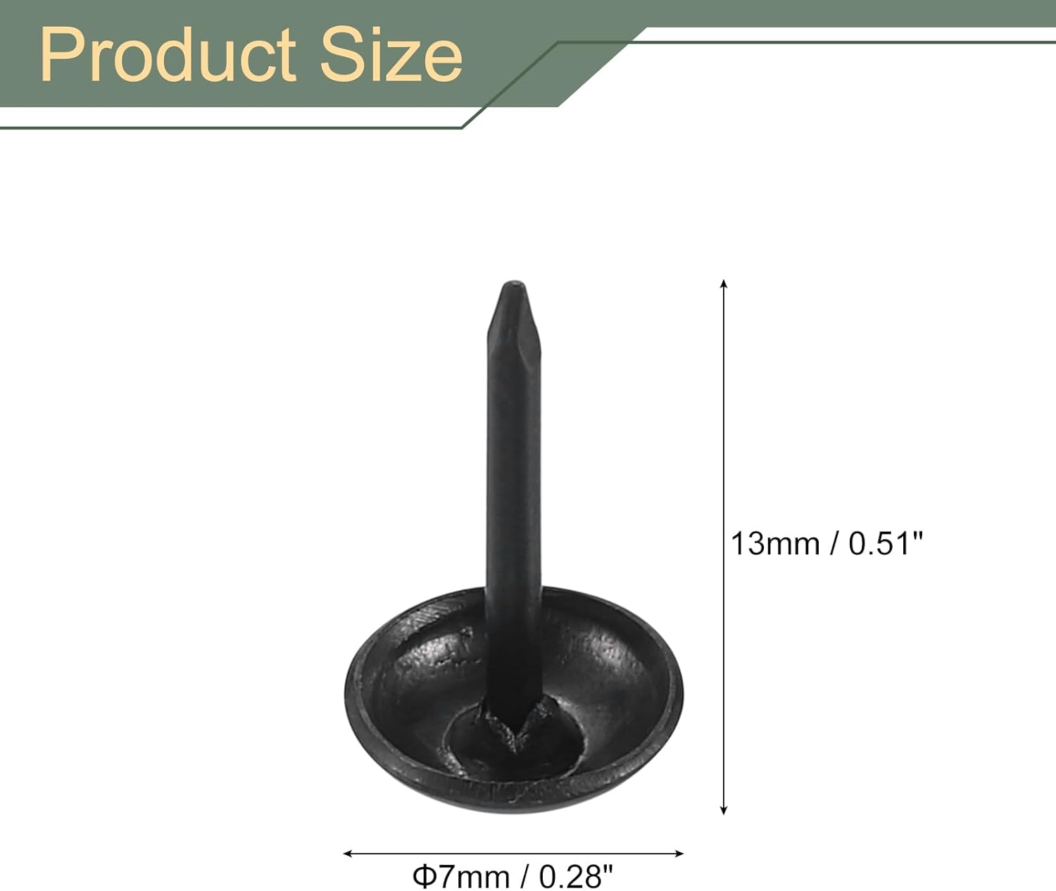 uxcell 50 Pcs Upholstery Tacks, 7 x 13mm Round Head Upholstery Nails Pins Vintage Decorative Furniture Tacks for Chairs Sofas Beds DIY Project, Black