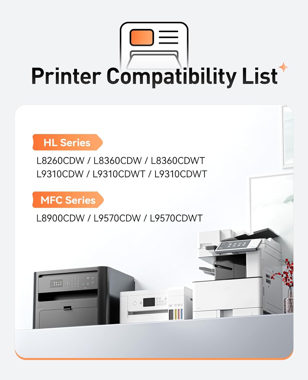 • Compatible Printers: Compatible with Brother HL Series Printer:HL-L8260CDW HL-L8360CDW HL-L8360CDWT HL-L9310CDW HL-L9310CDWT HL-L9310CDWT; Compatible with Brother MFC Series Printer:MFC-L8900CDW MFC-L9570CDW MFC-L9570CDWT.