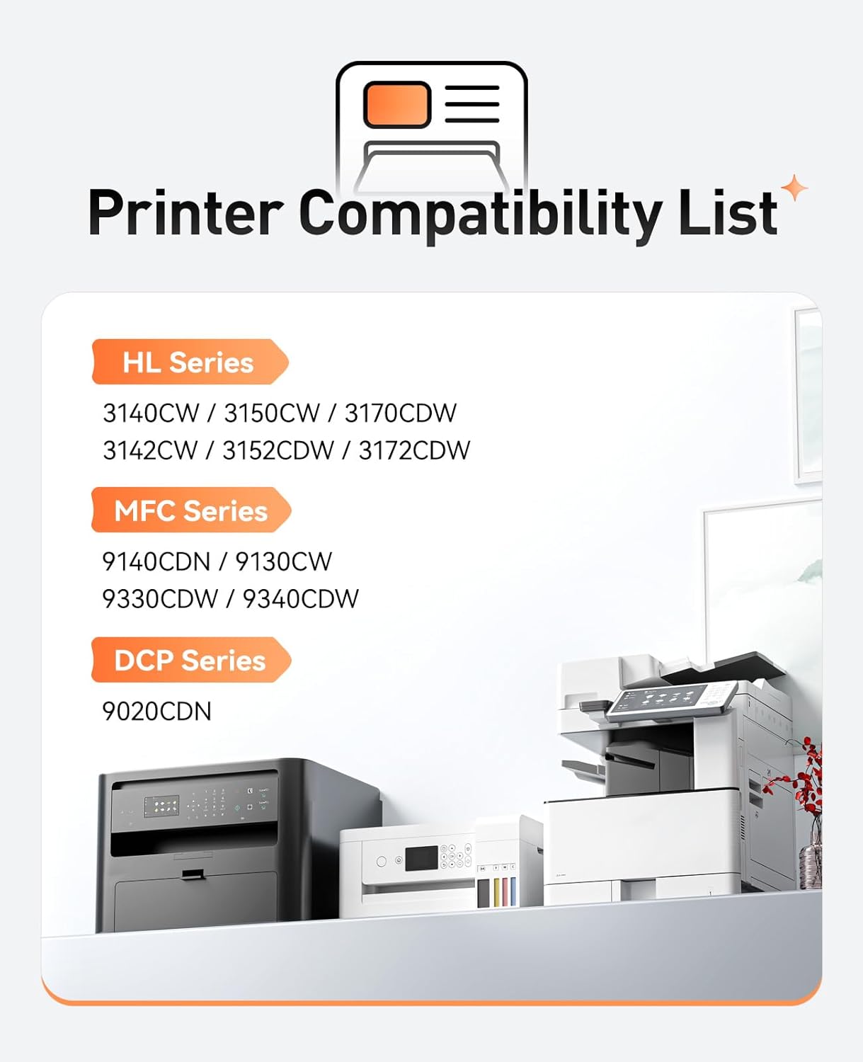 • Compatible Printers: Compatible with Brother DCP Printer Series:DCP-9020CDN. HL Printer Series:HL-3140CW, HL-3150CW, HL-3170CDW, HL-3142CW, HL-3152CDW, HL-3172CDW. MFC Printer Series:MFC-9140CDN, MFC-9130CW, MFC-9330CDW, MFC-9340CDW.