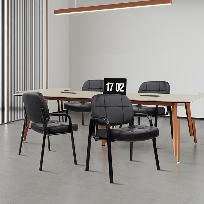 CLATINA Big & Tall 800 lbs Waiting Room Guest Chair, Leather Office Reception Chair No Wheels with Padded Arms for Elderly Home Desk Conference Room Lobby Side Salon Clinic, Black(8 Pack)