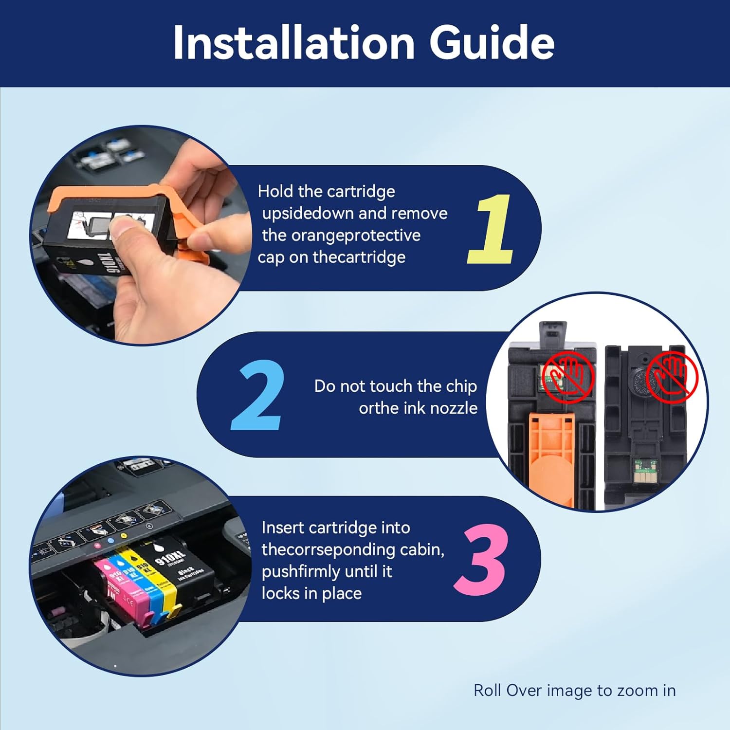 • Latest smart Chip: 910 XL ink cartridges feature the latest upgraded chip technology and can be used with “ HP+ ” service, work well with *e series printers to ensure efficient compatibility and fast recognition with your printer, while ensuring that your printer does not suffer any damage