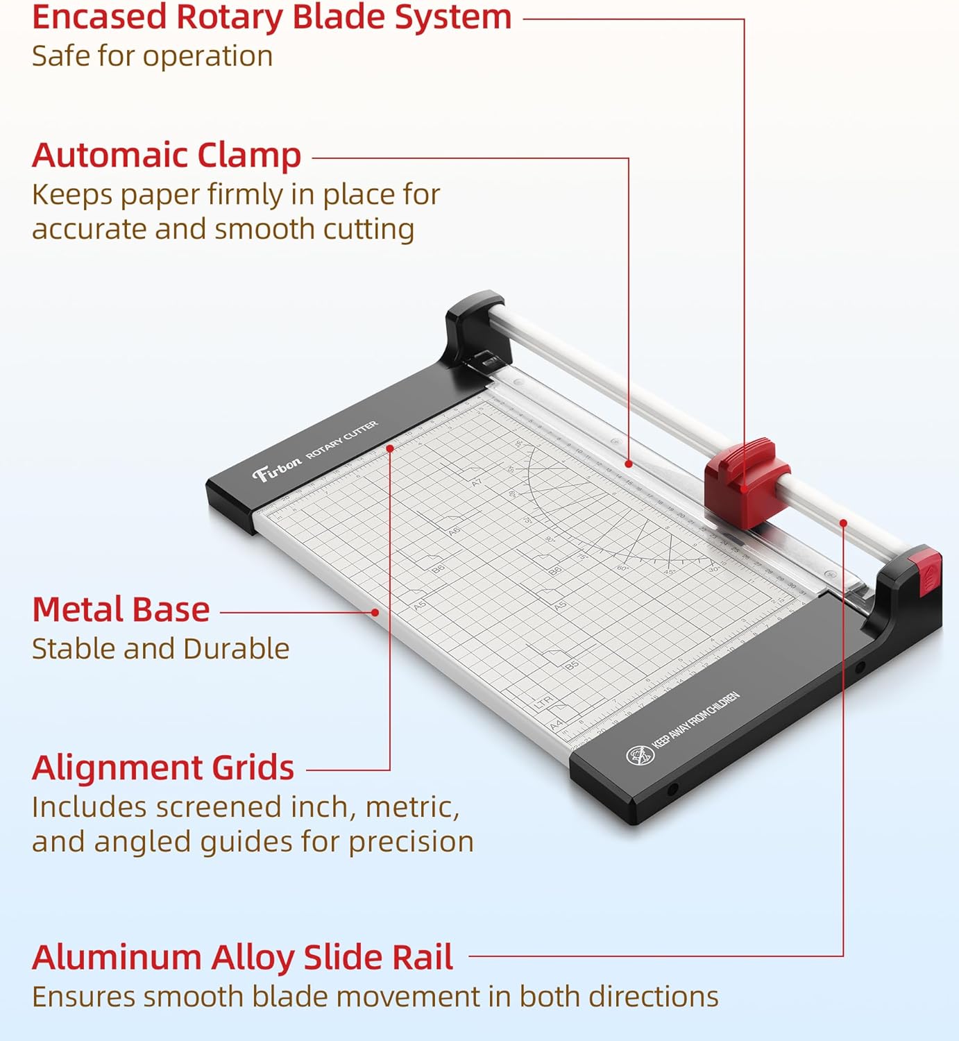 • Accurate Paper Trimmer: Clear centimeter and inch markings, alignment grid, and common A4, A5, B5 size indicators, assistant for efficient and precise measurements