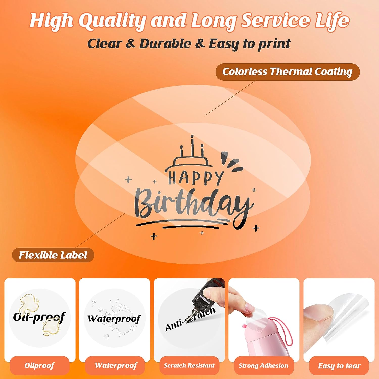 • {Nearly Invisible & Clear Printing}: The transparent sticker paper offers a near-invisible apperance, making printed content appear directly on objects—whether labeling glass jars, plastic containers, or metal surfaces. This clear design adapts to any background, ensuring professionalism for household organization, product packaging, or brand promotion. Use them as logo stickers customized with QR codes or thank-you messages for a polished look.