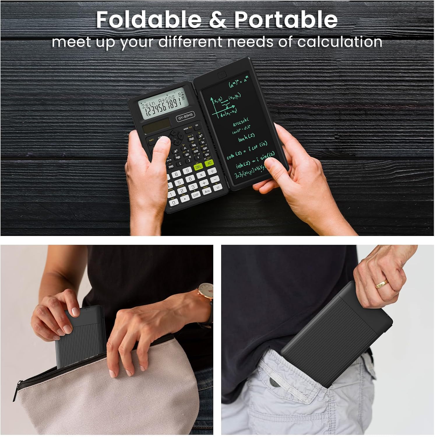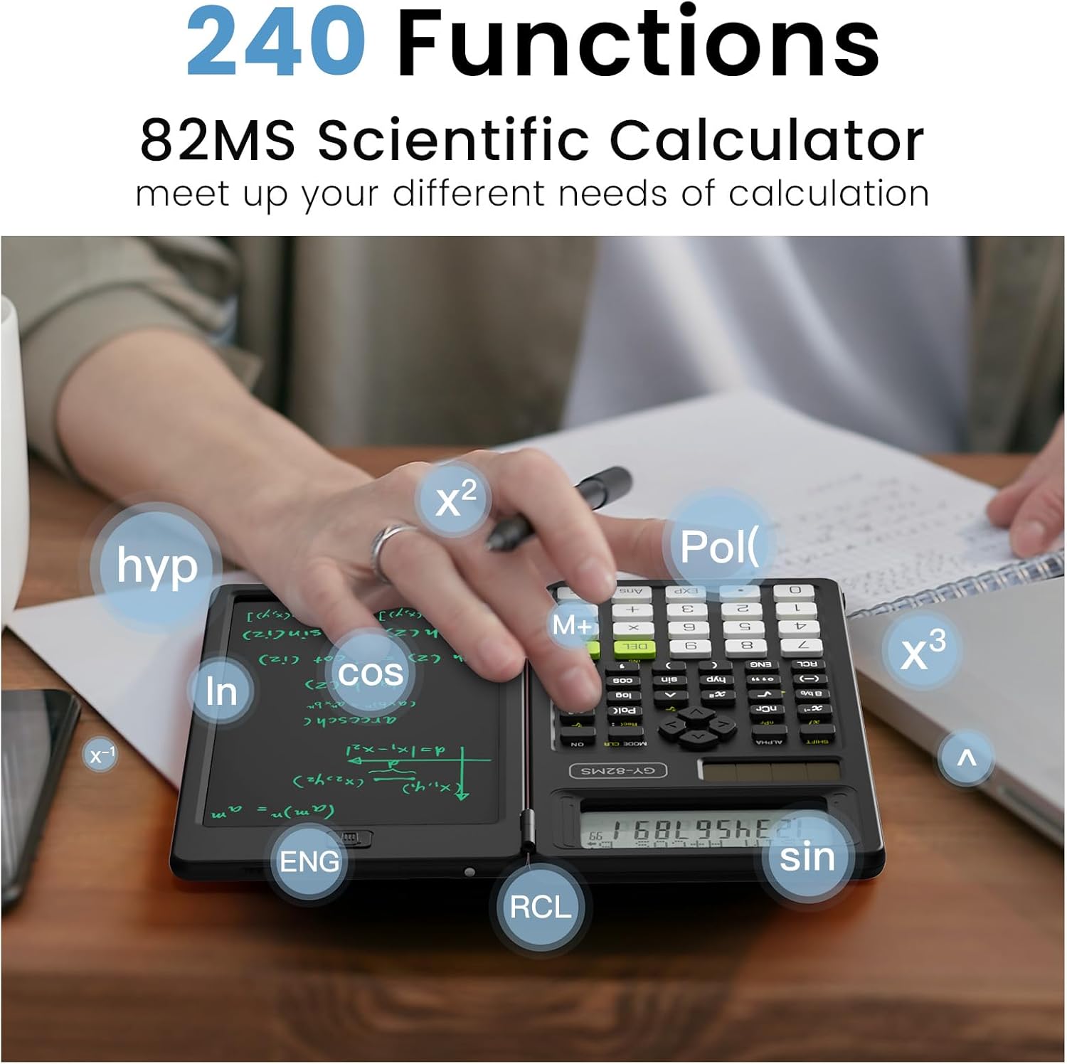 Scientific Calculators for School with Notepad, ROATEE Middle and High School Supplies for Student, 82 MS Foldable 2-Line Display Science Calculator with Writing Tablet, Solar and Battery Power Black
