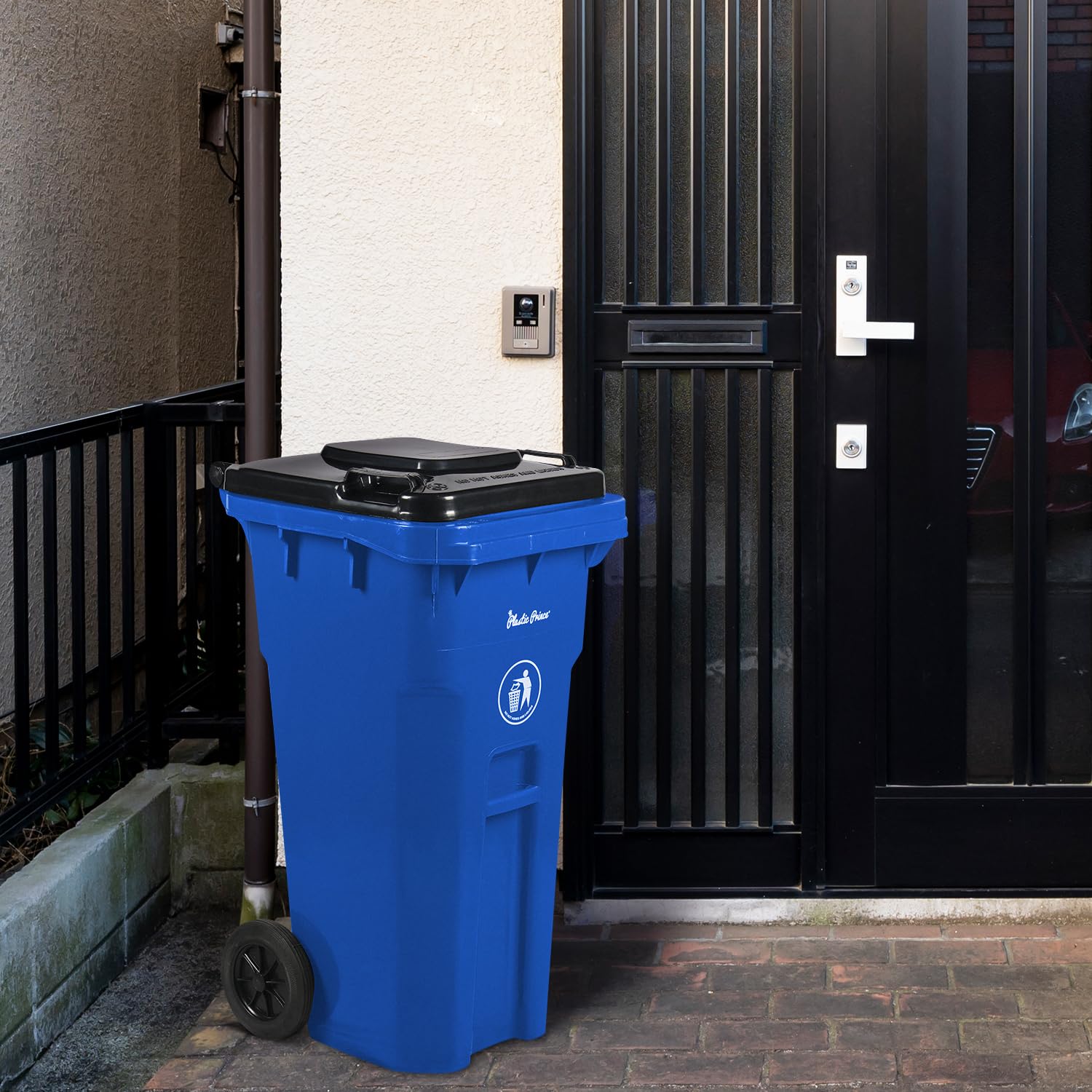32 Gallon Recycling Rollout Trash Can with Lid, Commercial Heavy-Duty Wheeled Outdoor Garbage Can, Blue 2 Pack