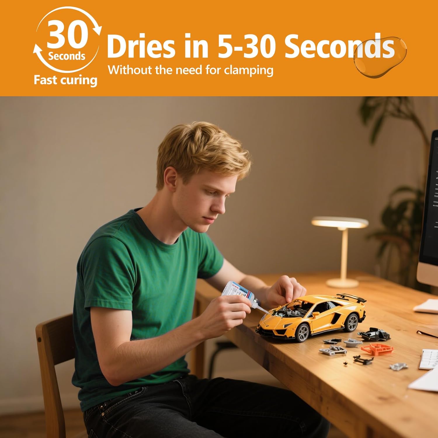 • ⭐Fast And Versatile And Efficient: Instant Plastic glue bonds in just 5-30 seconds,the clear Designed for a broad spectrum of plastics including PVC, ABS, Acrylic, 3D Print, Car, Craft and more, this powerful glue ensures a strong, lasting bond.Ideal for detailed craft work or urgent repairs, our glue ensures a rapid and reliable fix