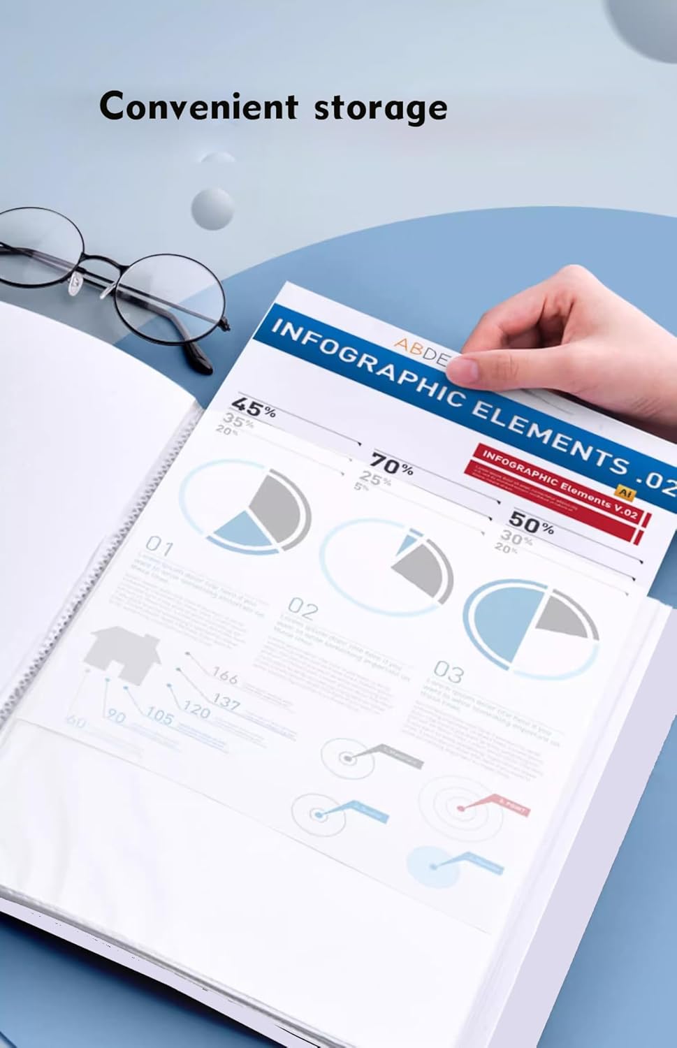 • 100 Secure Pockets for Maximum Organization — Holds A4-sized documents neatly; each pocket is extra-thick to prevent tears and spills, keeping your papers safe and organized.