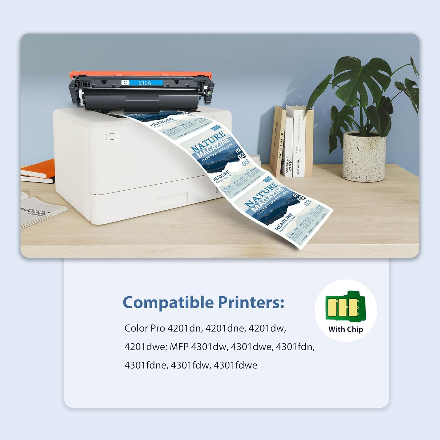 • Comprehensive Compatibility: Compatible with Color LaserJet Pro 4201dn, 4201dne, 4201dw, 4201dwe; Color LaserJet Pro MFP 4301dw, 4301dwe, 4301fdn, 4301fdne, 4301fdw, 4301fdwe, replacement for 210A Toner Cartridge. Compatible Replacement for 210A W2100A.
