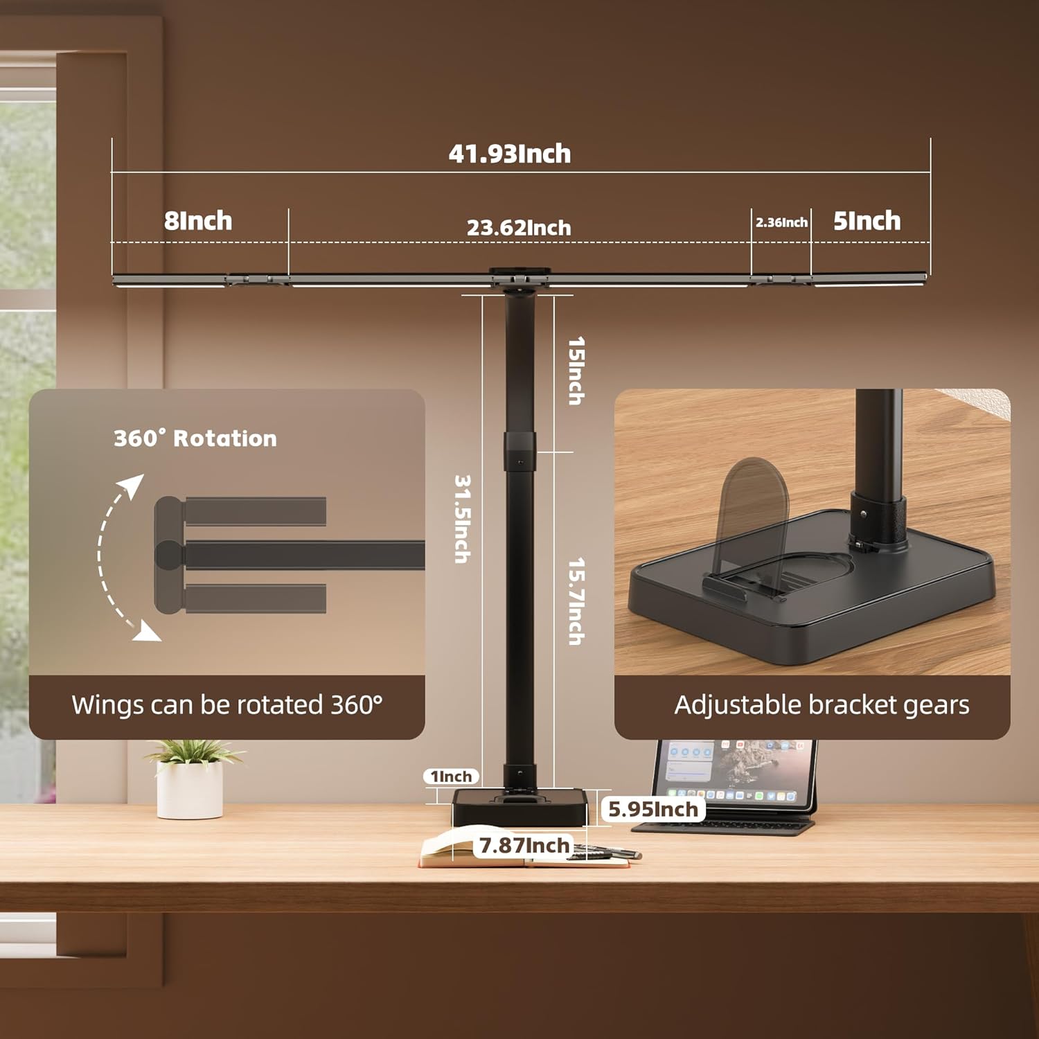 • 5 Joints for Ultimate Flexibility The foldable LED desk lamp is designed with 5 strong damping connectors and 4 super light strips, providing excellent flexibility for horizontal adjustment. Folding light strips to fine tune the lighting angle - raising them to expand the coverage of the entire table, or lowering them to obtain a focused high-intensity beam, is perfect for sewing, crafting, or detailed tasks, making it easy to adjust the direction and position of the lights to fit your workspace.