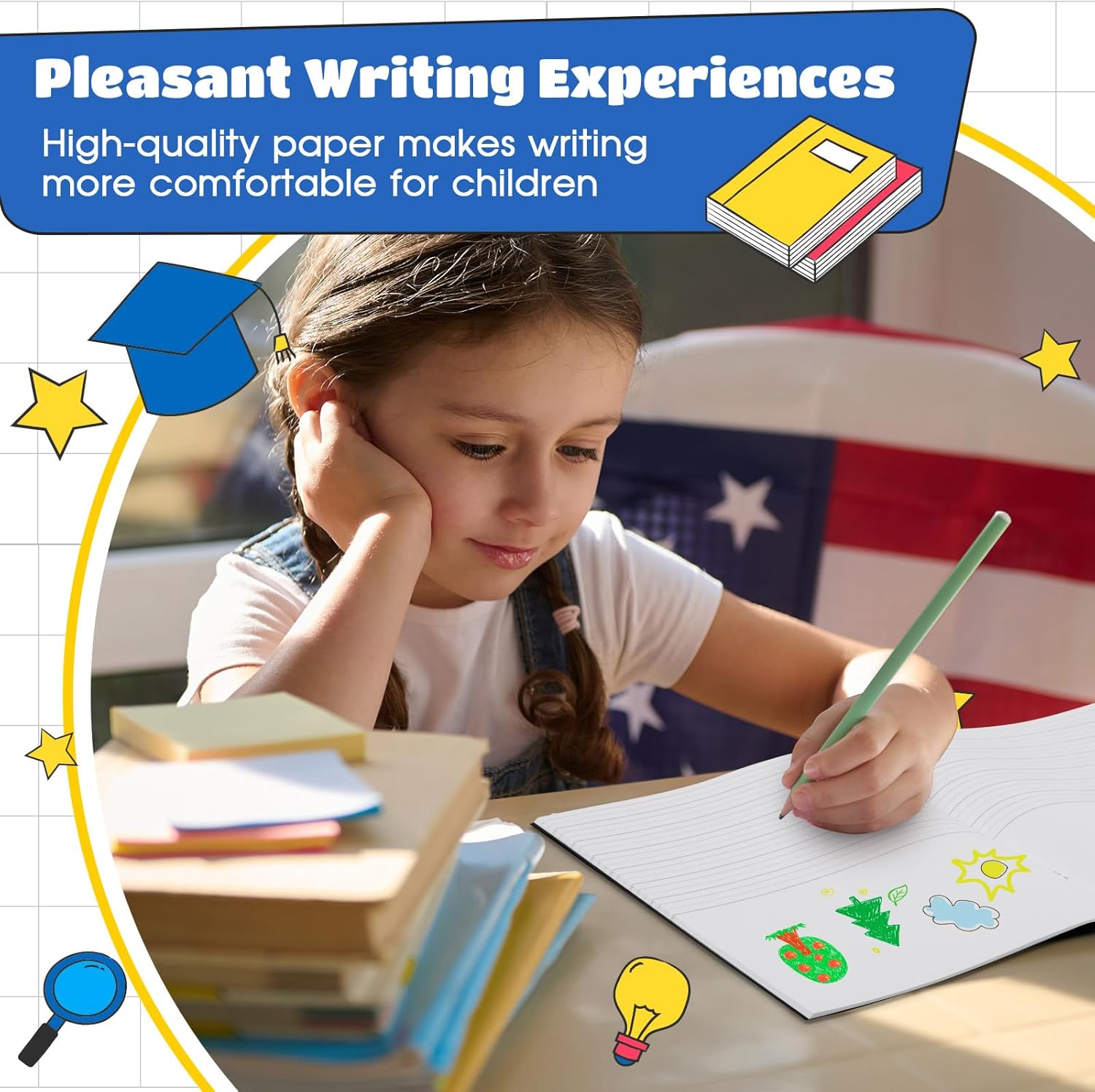 • Quality Paper Material: made of quality paper material, our primary notebook come with soft covers and thick white pages that are sturdy and tear resistant; This ensures long term usage and pleasant writing experiences, prioritizing safety and quality for both kids and students