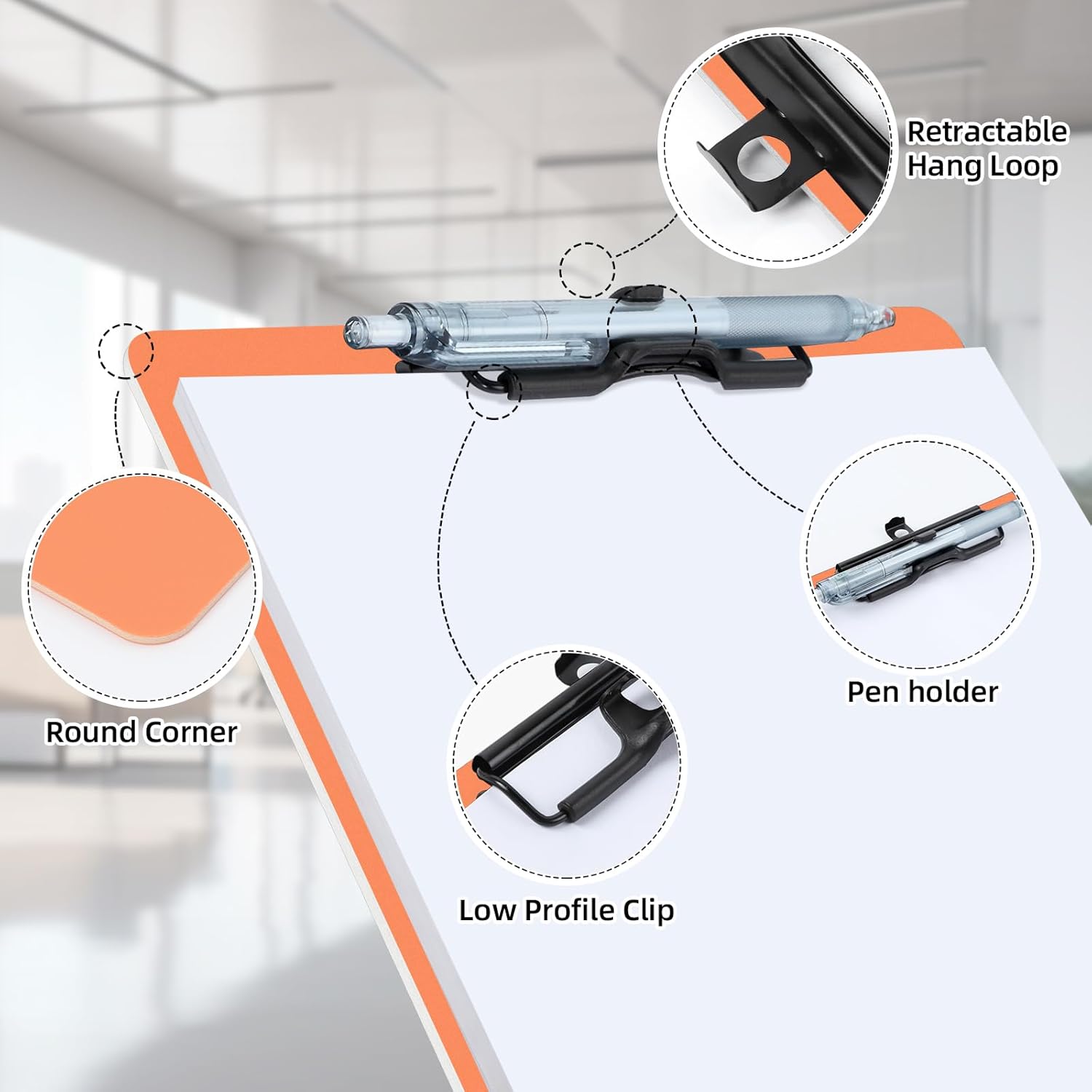 • Retractable Hanging Ring: The hanging clipboard has a retractable hanging ring on the top for easy access, you can hang it up to display the contents of your clipboard or hang it on the wall when not in use to save storage space. The low profile clip is ideal for stacked storage.