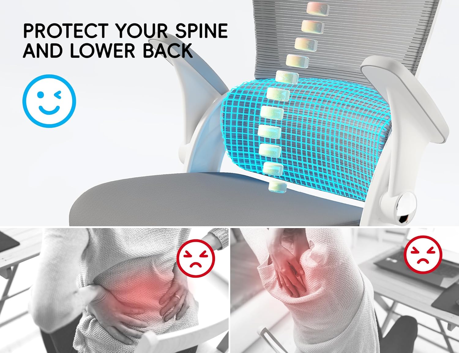 • Breathable Mesh Back for Cool, Sweat-Free Sitting:Stay cool even during marathon sessions! The high-density mesh back promotes airflow, keeping you comfortable and sweat-free—no more sticky backs in summer. Plus, the flexible mesh adapts to your movements, offering dynamic support without sacrificing breathability.