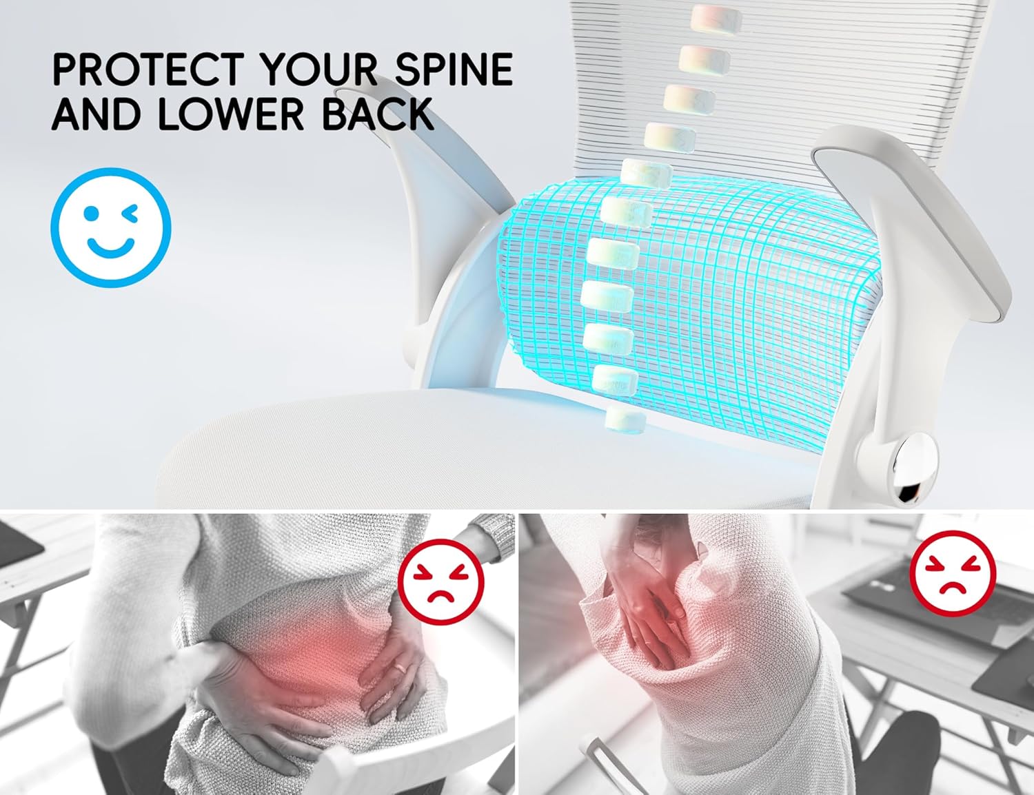 • Breathable Mesh Back for Cool, Sweat-Free Sitting:Stay cool even during marathon sessions! The high-density mesh back promotes airflow, keeping you comfortable and sweat-free—no more sticky backs in summer. Plus, the flexible mesh adapts to your movements, offering dynamic support without sacrificing breathability.