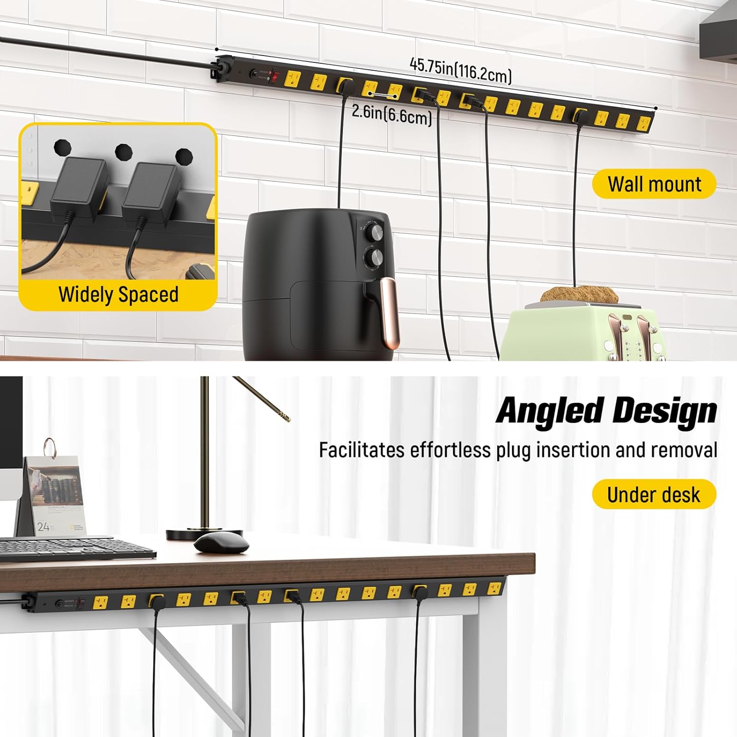 • Wall Mount Power Outlet Strip - Heavy duty power strip with surge protection come with 2 mounting holes to mount on the wall,with vertical or horizontal installation, for workshop, commercial, shop, industrial, garage workbench, networking and telecom applications