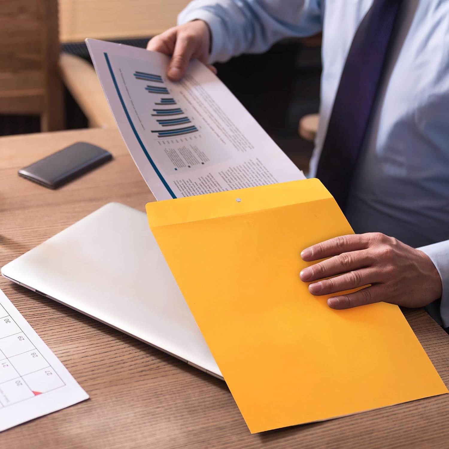 • Robust Construction for Extra Security: the strength of our large envelopes lies in their construction; Crafted from kraft paper and equipped with sturdy metal clasps, our envelopes resist tearing and are extremely durable; You can trust them with your important files