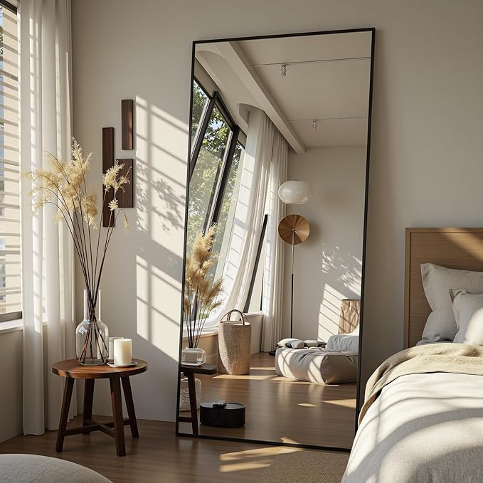 • Mirror Full Length: This full-length mirror measures 71 inches in length x 32 inches in width, which not only provides you with enough coverage to check your outfit from head to toe, but also ensures a multi-angle display to create an illusion of more space