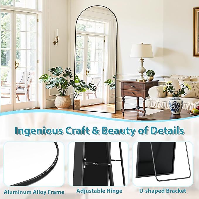 • Premium Material and Unique Design: This stand up mirror full length features a sturdy and durable aluminum alloy thin frame, Its sleek curved shape design makes it ideal for any modern or traditional decorative style, effortlessly enhancing the ambiance of any room
