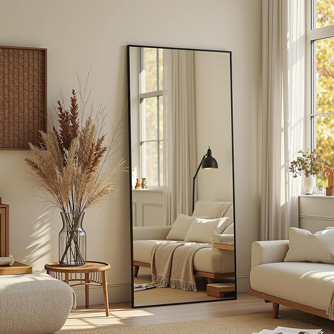 Full Length Mirror, 58"x21" Oversized Floor Mirror Freestanding, Full Body Mirror Floor Standing Mirrors with Stand, Hanging Mounted Mirrors for Bedroom Living Room, Black, Rect Style