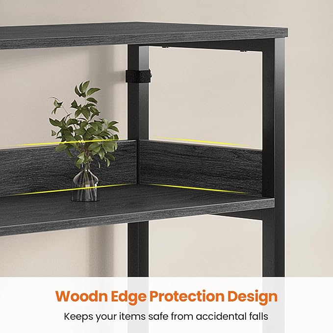 • Enhanced Stability:Equipped with adjustable foot, nd an anti-falling belt to enhance stability, prevent tipping, and ensure the safety of your family. Display shelf with 2 in baffles to prevent items from falling down