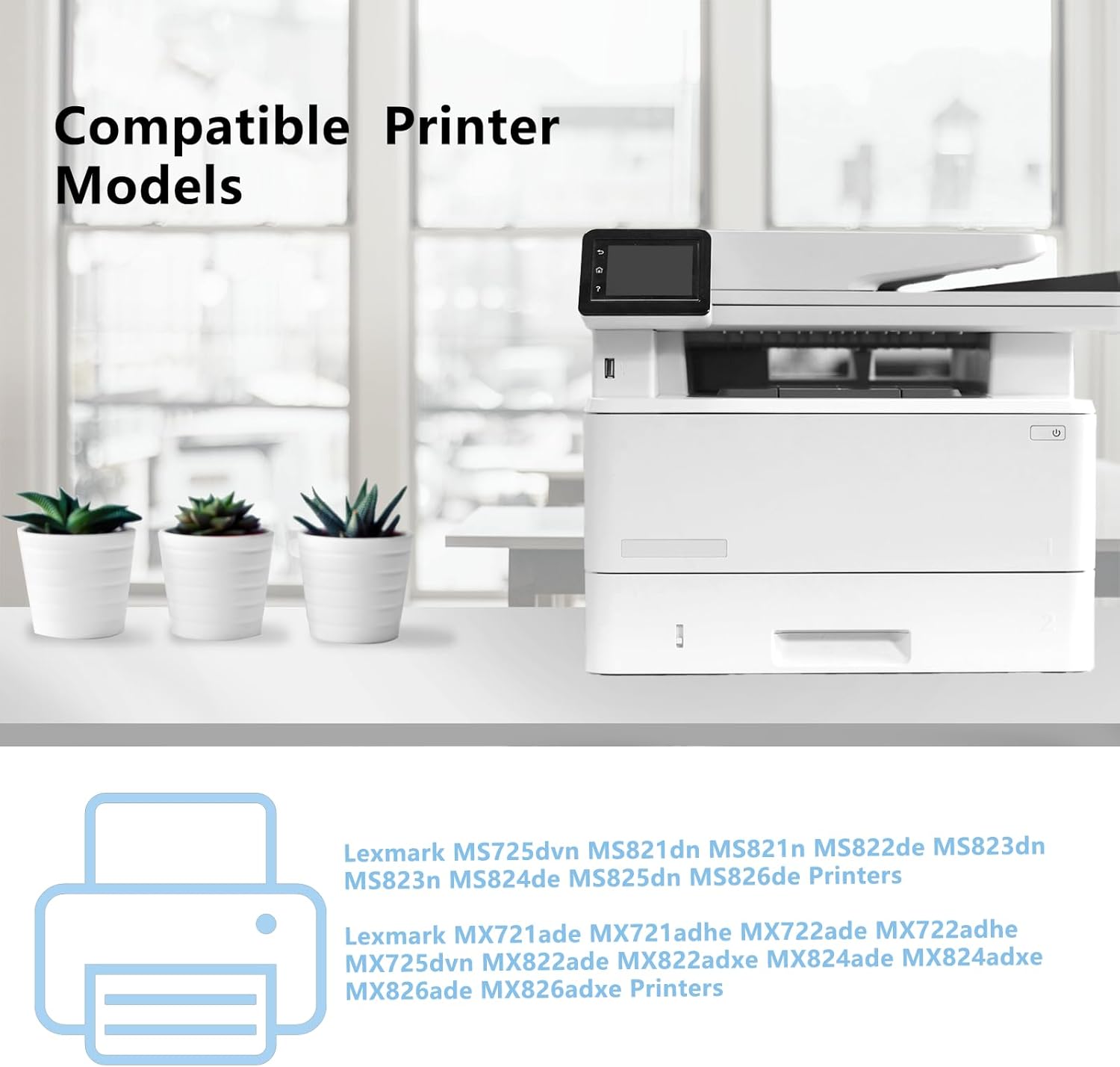 • Compatible Printer: MS725dvn MS821dn MS821n MS822de MS823dn MS823n MS824de MS825dn MS826de MX721ade MX721adhe MX722ade MX722adhe MX725dvn MX822ade MX822adxe MX824ade MX824adxe MX826ade MX826adxe Printers