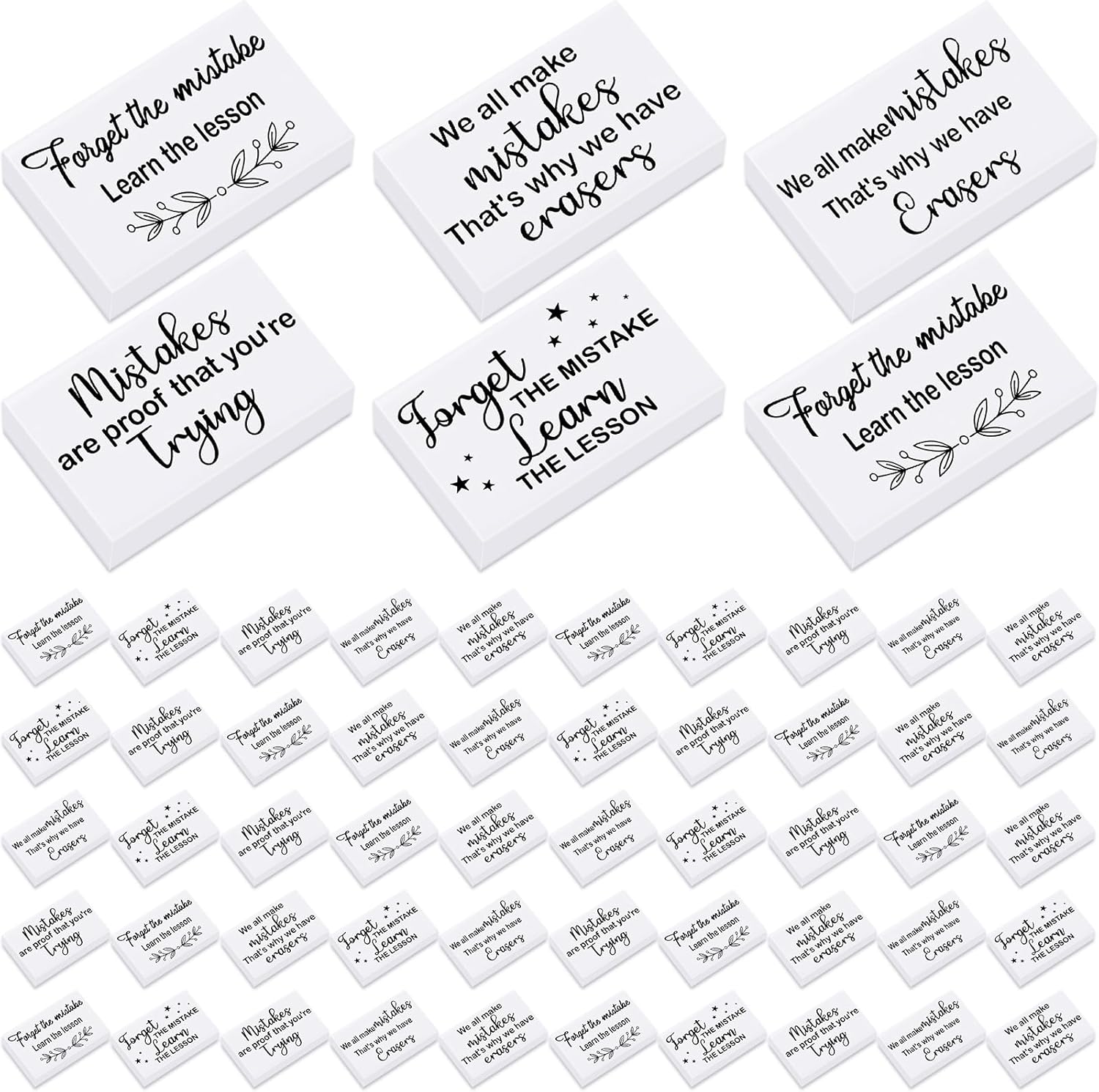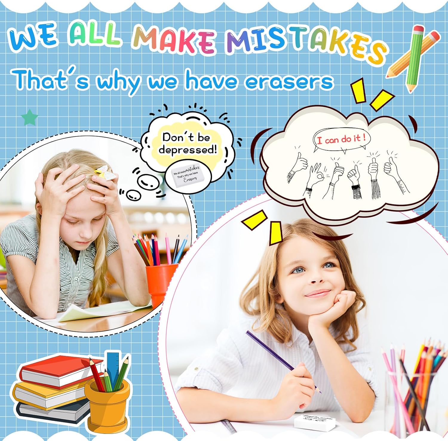 • Designed to Inspire: more than just erasers, they carry inspirational words and patterns to retain the positive vibe, including [Forget the mistake; Learn the lesson], [Mistakes are proof that you're trying], [We all make mistakes; That's why we have erasers]; These fun and motivational accessories add a little bit of brightness and a splash of color to your workspace or study area