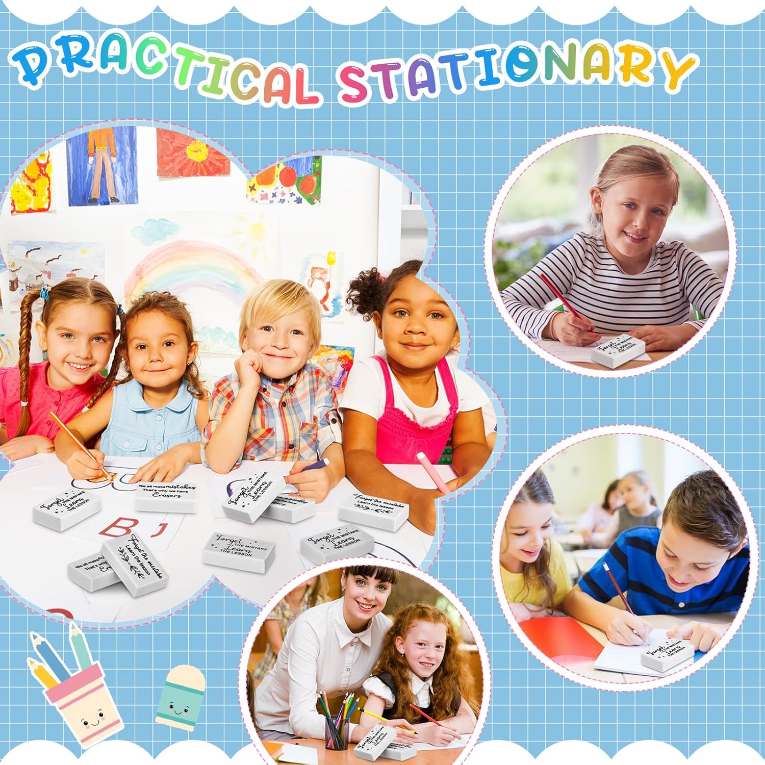 Nezyo 100 Pcs Inspirational Erasers Bulk for Kids Back to School Gifts Fun Erasers Motivational Reward Supplies for Classrooms Students Teachers Office Supplies(White)