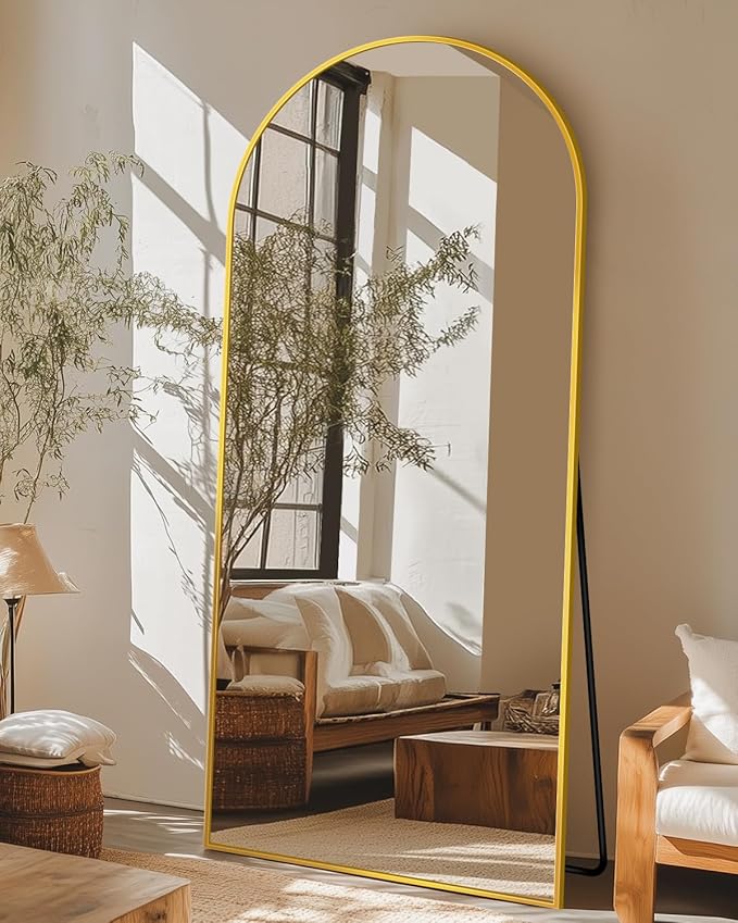 Full-Length Floor Mirror with Stand, 58"x21" Arched Style Full Body Standing Mirror for Bedroom, Living Room, Gym, Dorm - Shatter-Resistant & Easy Assembly, Gold