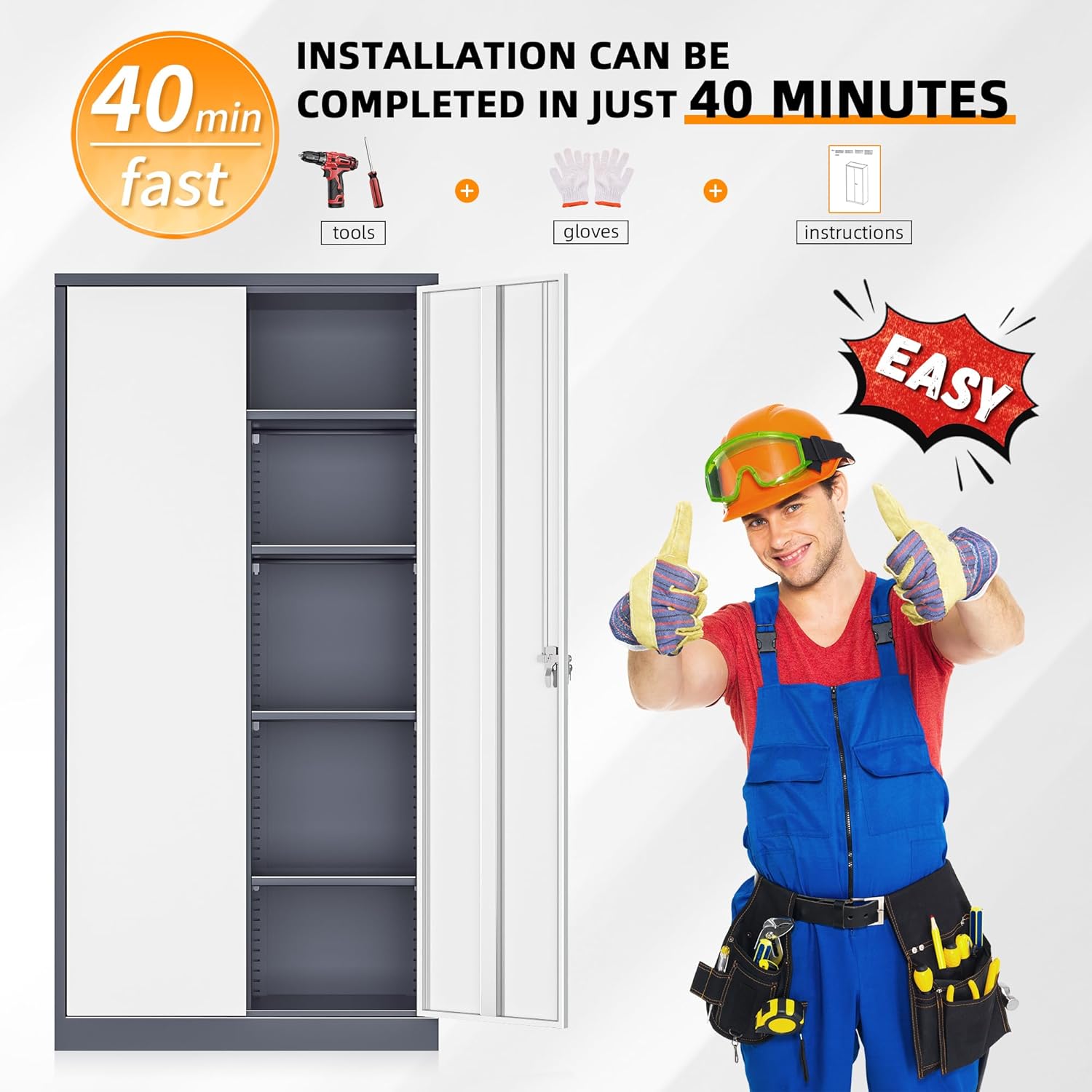 • 【Easy assembly】: Metal storage cabinet with 2 locking doors can be assembled step by step. There are 4 pre-holes on the back of the steel cabinet, you can screw it to the wall for stability.