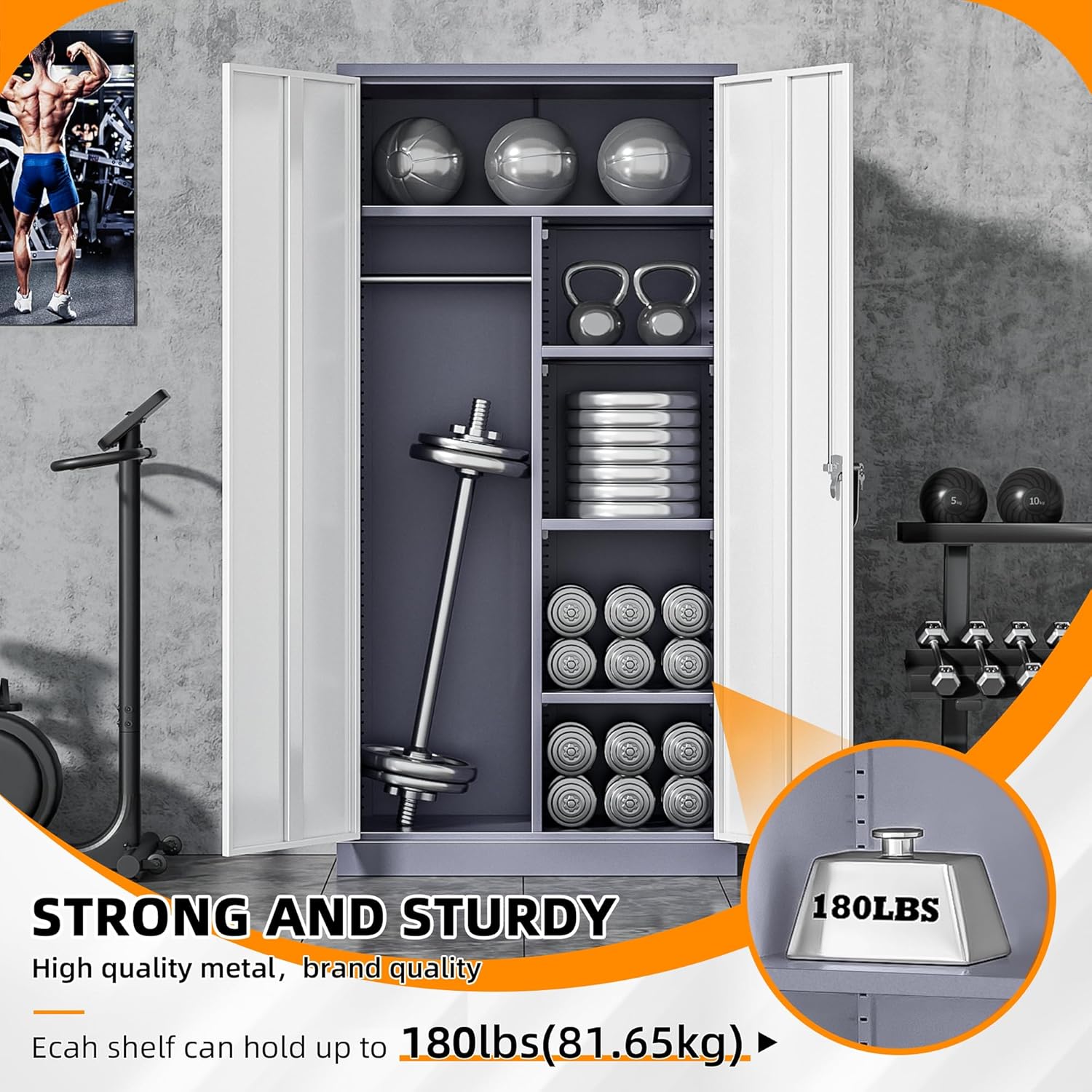 INTERGREAT Metal Storage Cabinet,72 Tall Armoire Wardrobe Closet with Doors,Grey White Storage Locker Cabinets with Adjustable Shelves and Removable Hanging Rods