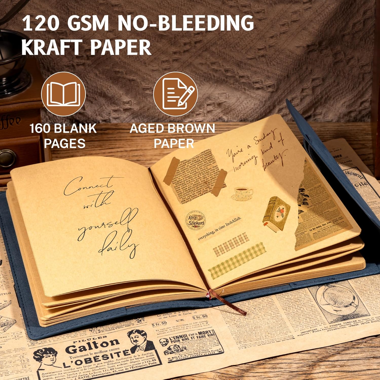 • PREMIUM KRAFT PAPER: The leather journal is made of 120 GSM aged brown colorkraft paper, which complements the cover. 160 pages sturdy blank paper for a smooth creative experience and not easy to bleed and ghost.
