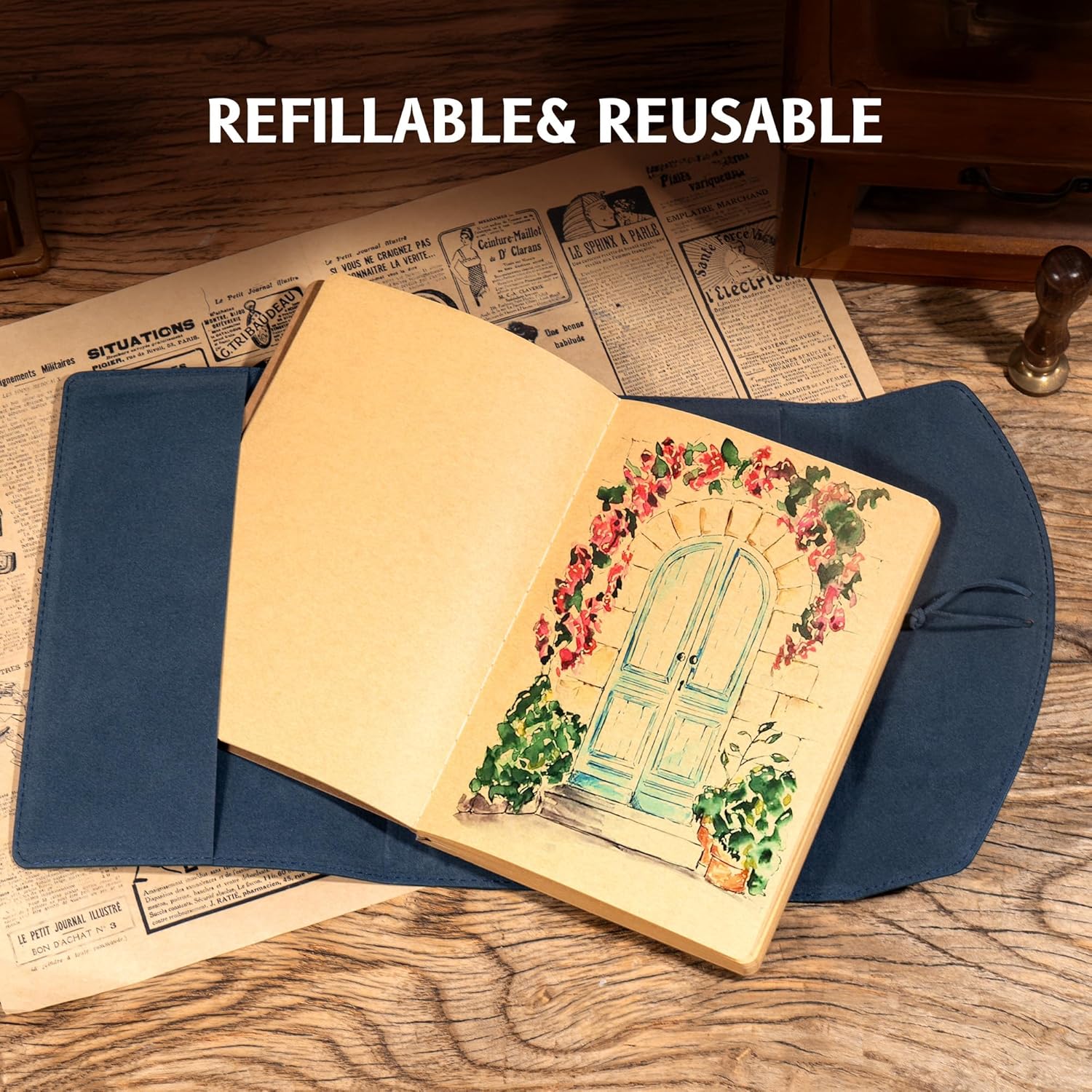 • REFILLABLE& REUSABLE: Unique fillable design, you can fill it with fresh paper to begin a new adventure! Reusable as a travel journal, junk journal, book of shadows, artist's sketchbook, a beautiful drawing/painting journal, writing diary.