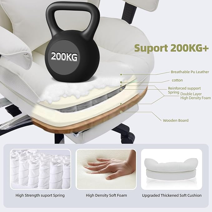 • Cushion-Like Feel in a White Office Chair with Footrest Enjoy all-day softness with the spring-based, memory foam seat in this white chair. The thick cushion feels like a sofa, while the reclining backrest and hidden retractable footrest offer true relaxation. Whether you’re working or resting, this white office chair with footrest helps keep you refreshed and supported.