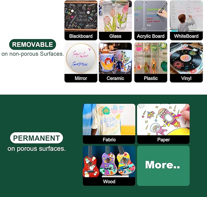 • Versatile. Best use on blackboards, chalkboard, dry erase board, glass, windows, plastic, ceramic and most nonporous surfaces.