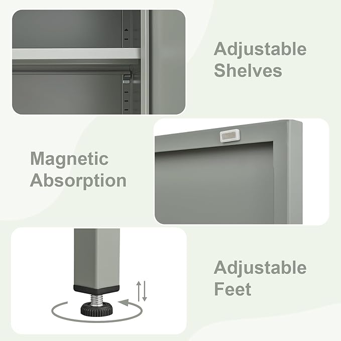 • 【Perfect storage space】Perfectly sized, compact, attractive and space-saving, this green metal cabinet measures 15.75"L × 13.78"W × 25.6"H, making it easy to move around any corner!