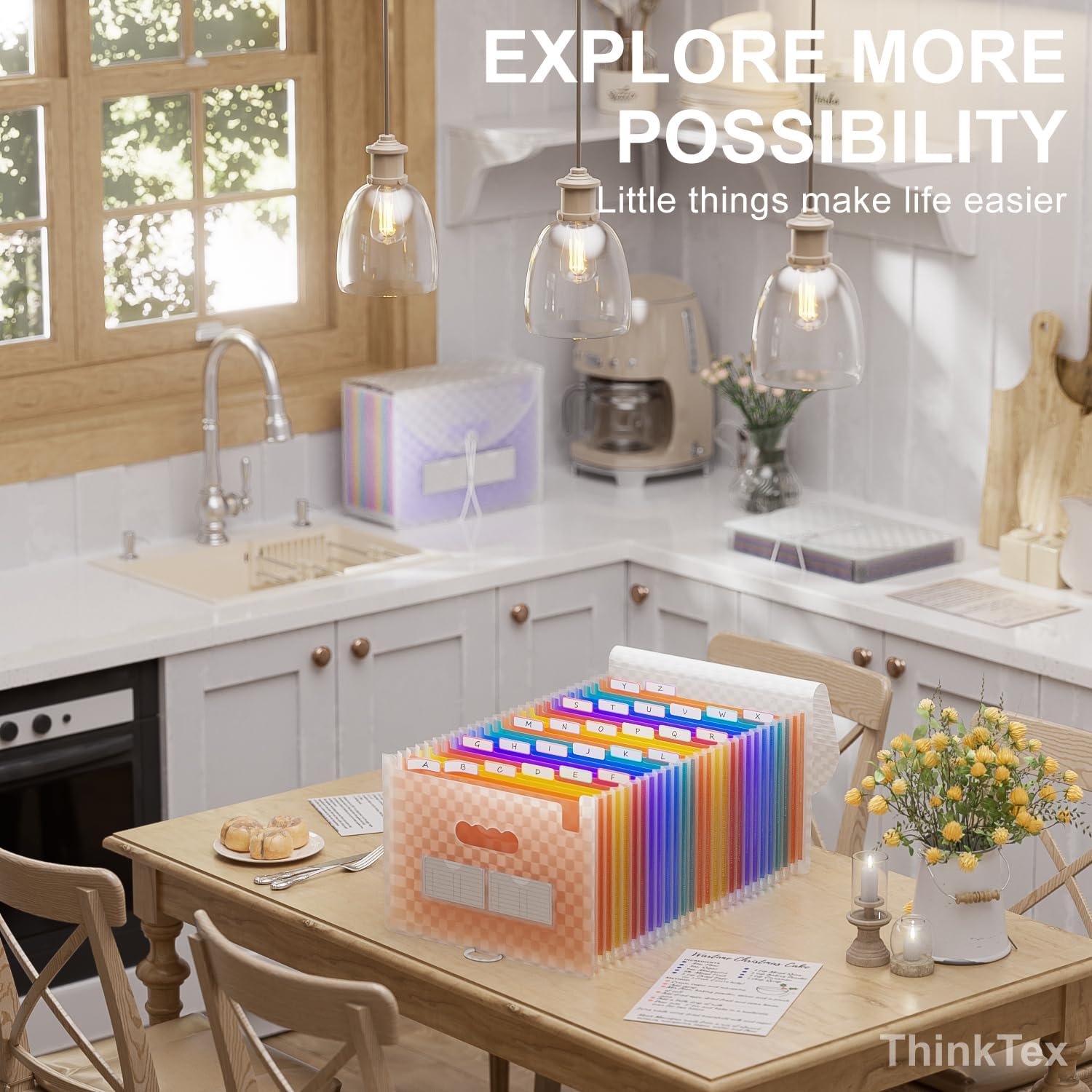 • MONTHLY BILLS ORGANIZER - ThinkTex 26 pockets accordion file organizer, top and bottom both expandable, A-Z multi-colored tabs, for letter/A4 size