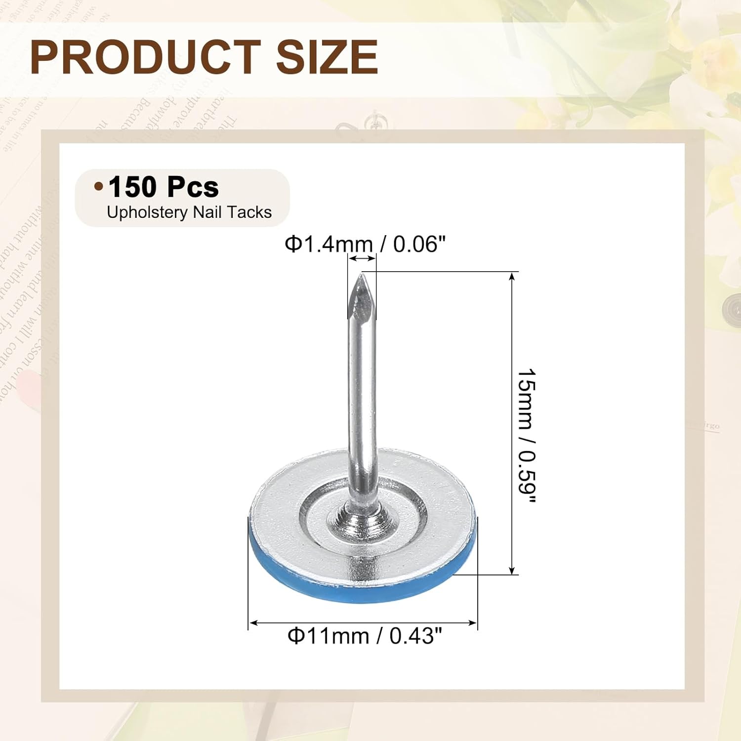 • [Size & Quantity] - The package comes with 150pcs decorative upholstery tacks. Sufficient quantity to meet your different daily needs. The overall size of upholstery nails is about 11mm x 15mm/0.43-inch x 0.59-inch(D*H)