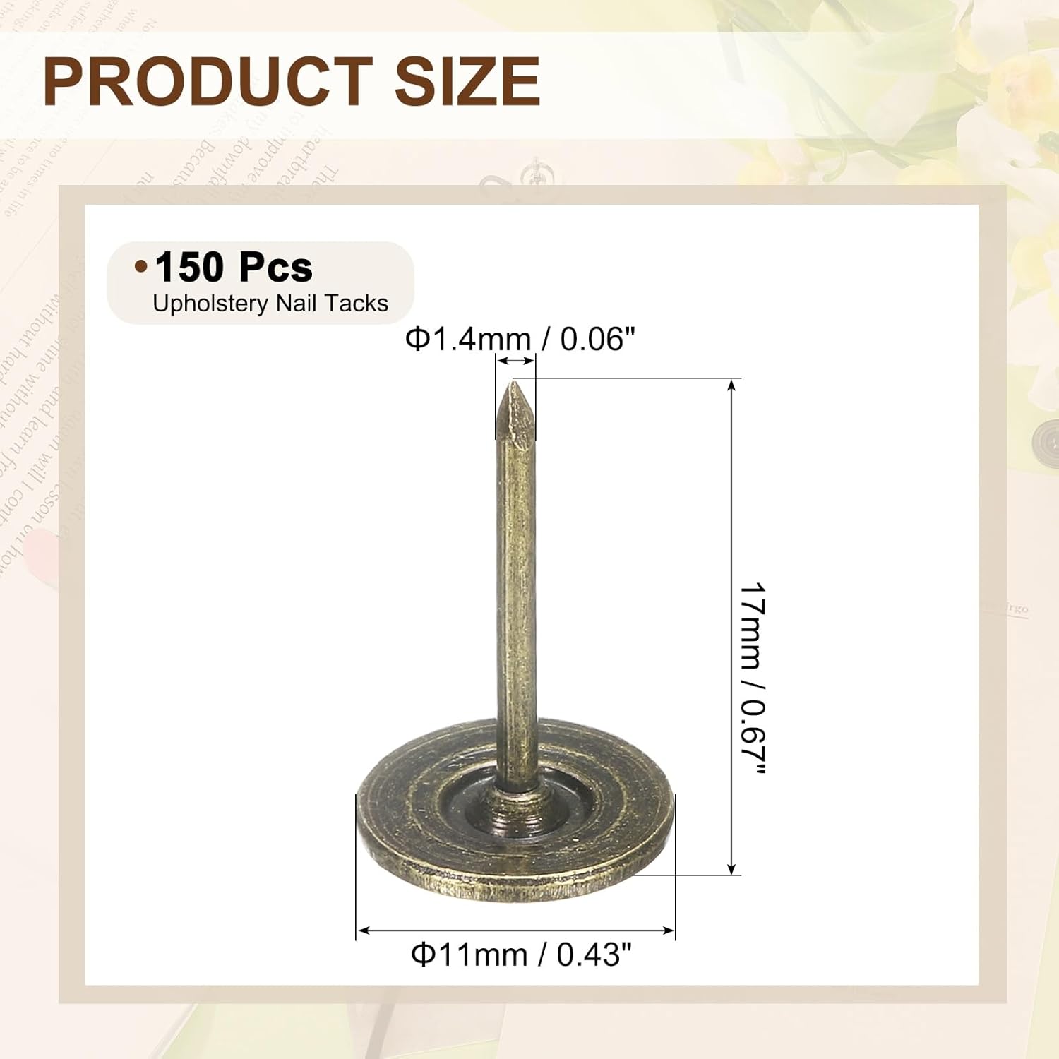 • [Size & Quantity] - The package comes with 150pcs decorative upholstery tacks. Sufficient quantity to meet your different daily needs. The overall size of upholstery nails is about 11mm x 17mm/0.43-inch x 0.67-inch(D*H)