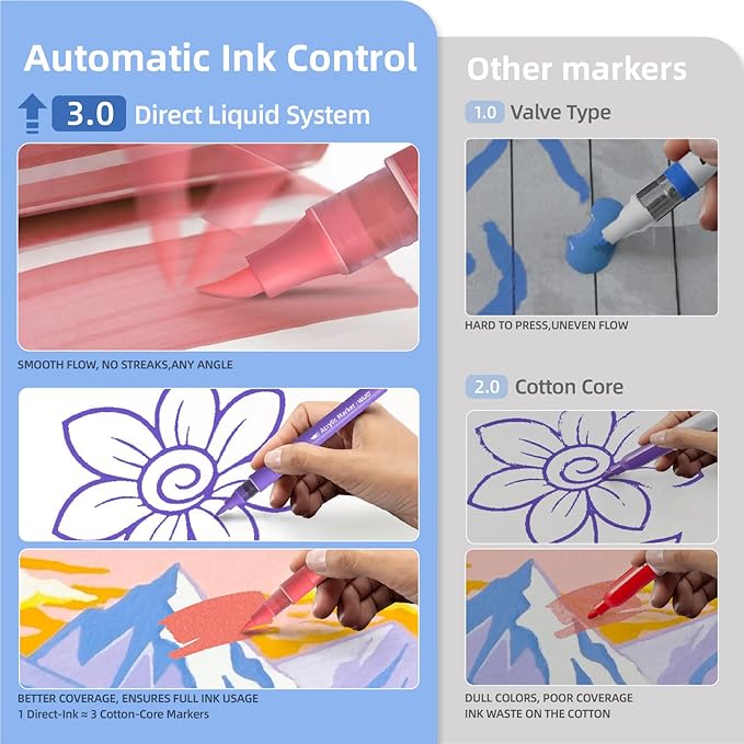 • 【Direct Liquid Ink Technology】: Unique automatic ink-control system ensures smooth, consistent flow without pressing; No clogging or drying issues; Requires only gentle shaking for immediate use on multiple surfaces