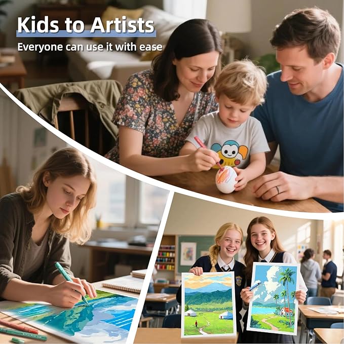 • 【Portable Creative Studio】:Custom 5-layer acrylic case + accessory envelope; Enhanced protective box reduces shipping damage risks; Quick-access design with color-coded caps; Perfect for indoor/outdoor painting; classroom projects or holiday decorations